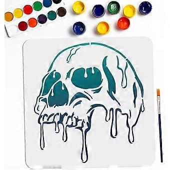 Skull Stencil 11.811.8inch Large Melting Skull Stencils for Painting with Paint Brush Square Skeleton Templates for Wood Canvas Paper Fabric Wall Glas