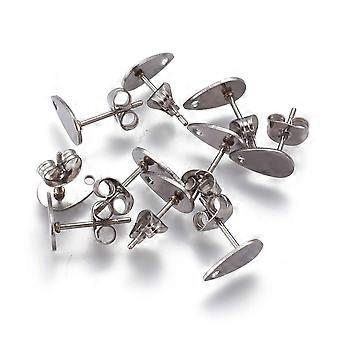 Non-Tarnish 304 Stainless Steel Stud Earring Findings with Ear Nuts/Earring Backs Oval Stainless Steel color 25x15.5mm Hole: 1.4mm Pin: 0.7mm