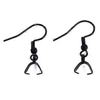 304 Stainless Steel Hooks Ear Wire with Ice Pick Pinch Bails Electrophoresis Black 27x20mm 21 Gauge Pin: 0.7mm