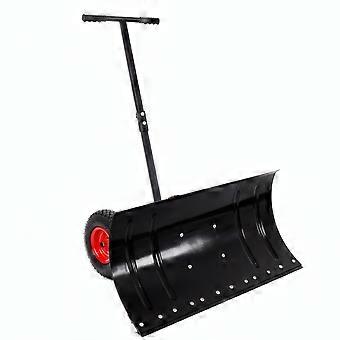 29 Inch Heavy Duty Snow Pusher with Wheels, Adjustable Handle and Steel Blade for Driveway