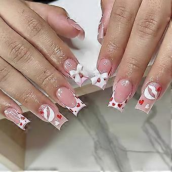 Valentine's Day Press On Nails Long Stiletto Fake Nails with Heart and Lip Design, 24pcs Set