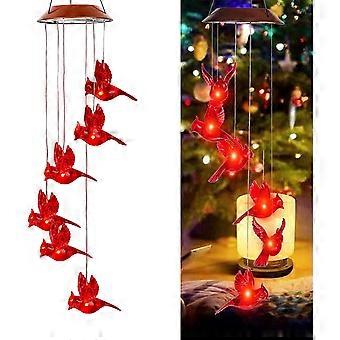 Solar Red Bird Wind Chimes, Color Changing Solar Powered Red Cardinal Bird Wind Chime LED Light