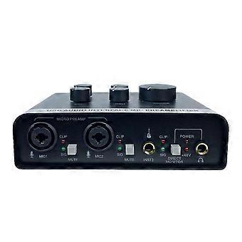 Sound Interface, 2 in 2 Out, XLR 1/4in Mic Preamplifier, Professional, Realtime Monitoring, USB Card for PC Recording, Podcasting, Streaming