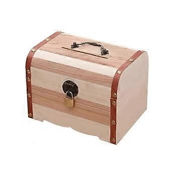 Children's Piggy Bank Solid Wood, Retro Style, Large Capacity, Antique Copper Padlock, Size X-Large