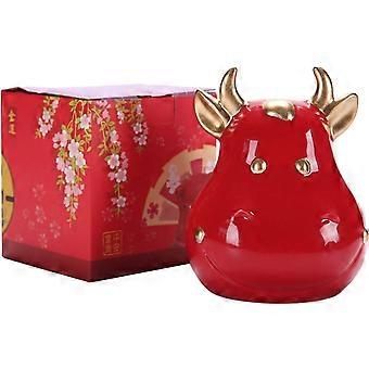 Chinese Zodiac Piggy Bank Red Ceramic Golden Cow Coin Saving Box for Wedding Year Gift