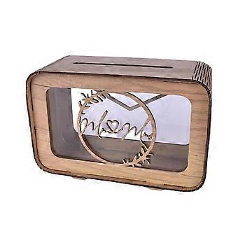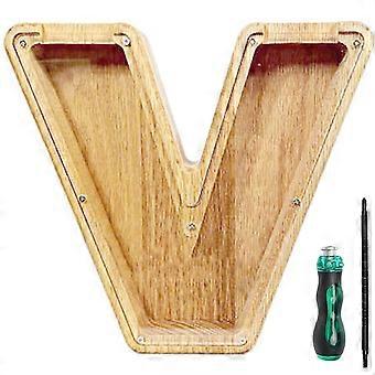 Wooden Piggy Bank DIY Custom Letter AZ Transparent Money Saving Box Large Capacity