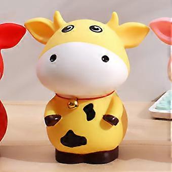 Piggy Bank for Kids, Bright Yellow Cartoon Cow Coin Bank 14cm, Encourages Saving Habits