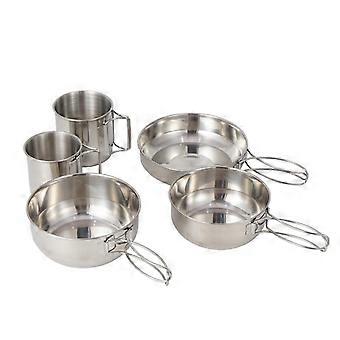 Stainless Steel Camping Cookware Set - 5-Piece Outdoor Cooking Kit with Kettle, Pan, Bowls, and Utensils