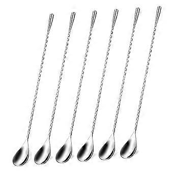 Stainless Steel Mixing Spoons - 6-Piece Set, Long Spiral Cocktail Spoons For Mixing Drinks, Bar And Home Use