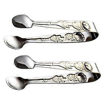 Stainless Steel Serving Tongs 2pcs Set with Ice Cube Clips for Food Storage 10.5x1.7x3cm Beautiful Silver Pattern