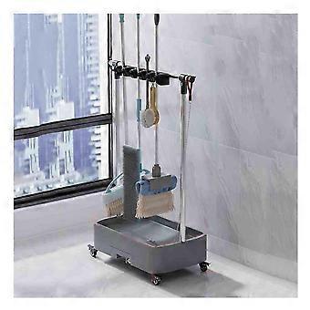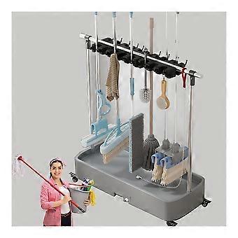 Movable Mop and Broom Holder with Wheels, FastDrying Drain Rack, Commercial Cleaning Tool Organizer