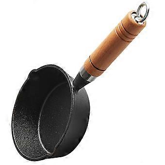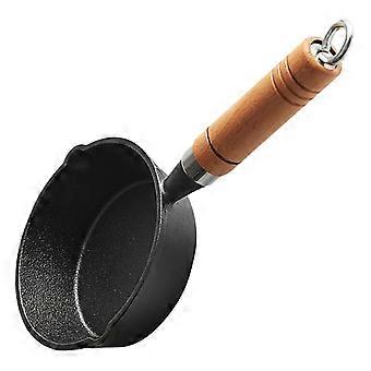 Mini Cast Iron Saucepan with Wooden Handle for Butter and Sauces, Even Heat Stove Cooking