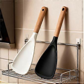 Silicone Cooking Spoon with Wooden Handle, Nonstick Spatula Scoop for Kitchen White and Black