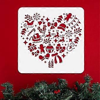 Christmas Theme Heart Stencil for Painting 11.8"x11.8" Reusable Christmas Stencil Drawing Template DIY Craft Paint Template for Wall Home Decor Wood B