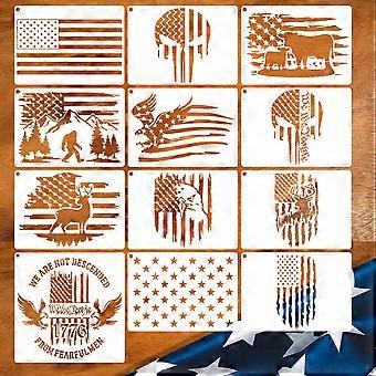 12pcs American Flag Stencil Set with Star Stencils for Painting, Reusable Patriotic DIY Templates for Wood, Fabric, and Shirt Crafts
