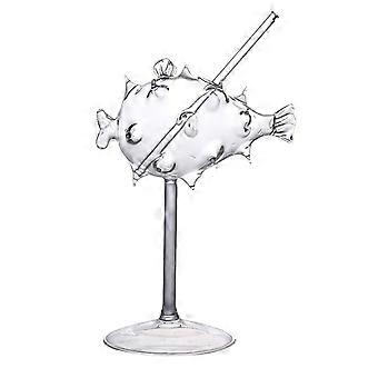 Cocktail Glass with Unique Pufferfish Shape, Clear Crystal Wine Goblet for Home Bar and Parties