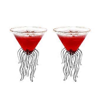 2Pcs Jellyfish Shaped Cocktail Glasses, Elegant Transparent Glass Goblet Set for Parties and Whiskey
