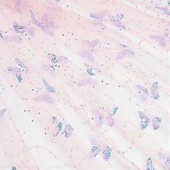 2 Yards Butterfly Pattern Polyester Mesh Tulle Fabric 51 Inch Sequin Butterfly Lace Fabric for DIY Handmade Clothing Wedding Dress Home Decor Misty Ro