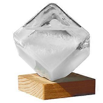 Storm Glass Weather Forecast Station, Transparent Water Cube Shape Desk Decor with Wooden Base for Home Office Use