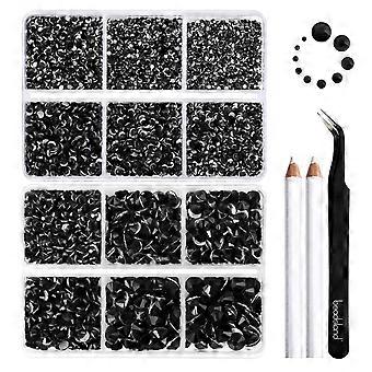 Black Flatback Rhinestones for Crafts and Nails, 8300PCS Jet Black Mixed Sizes Kit with Tools