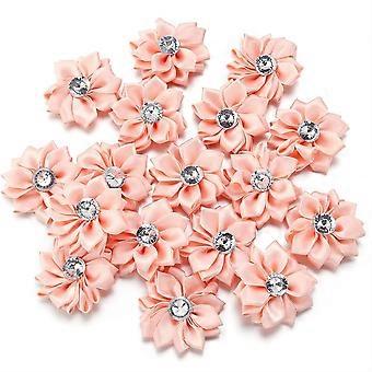 20pcs Mini Satin Ribbon Flower Hairpins with Rhinestones, DIY Handmade Floral Hair Accessories