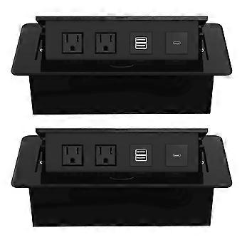 2 Pack Pop Up Power Outlet with PD 30W USB C and USB A, Recessed Power Strip for Table or Countertop