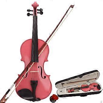 3/4 Beginner Acoustic Violin Kit with Case Bow Rosin Shoulder Rest Pink