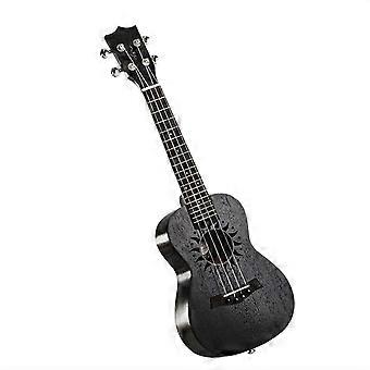 23 Inch Solid Wood Concert Ukulele Black 4 String with Warm Tone for Beginners and Music Lovers