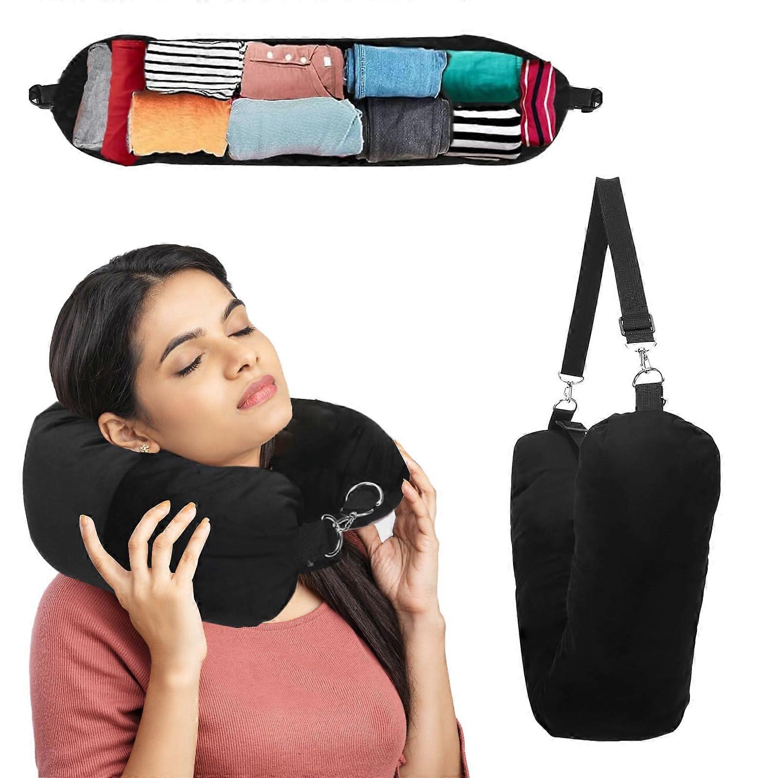 Stuffable Travel Pillow Neck Pillow For Travel Packable Neck Pillow With Up To 3 Days Clothes Black