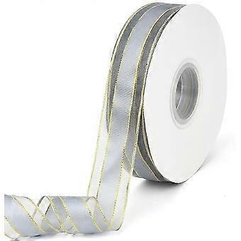 50 Yards 1 Inch Gray Gold Ribbon Chiffon Metallic Glitter Edge Trim Transparent Sheer Organza Mesh Voile Ribbons Bulk with Spool for Sewing Making Cra