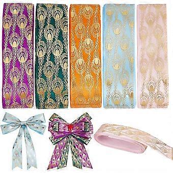 25 Yards 5 Colors Peacock Jacquard Ribbon 1 Inch Peacock Feather Gold Woven Vintage Embroidered Ribbon Polyester Jacquard Edge Trim Fabric for DIY Wed