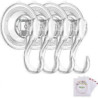 Suction Cup Hooks, Small Clear Reusable Heavy Duty Vacuum Suction Cup Hooks With Cleaning Cloth Strong Window Glass Kitchen Bathroom Hooks For Towel R