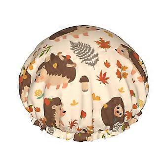 Reusable Waterproof Shower Cap for Women and Men, Adjustable Fit with Cute Hedgehog Pattern
