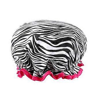 Waterproof Double Layer Shower Cap for Women, Fashion Prints, Elastic Fit, Reusable Large Size