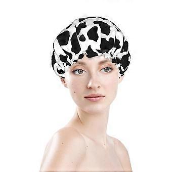 Cow Pattern Large Waterproof Shower Cap for Women and Men, Reusable Double Layer Adjustable Fit for Long Hair