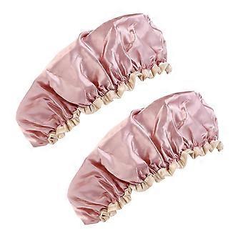 2pcs Waterproof DoubleLayer Shower Cap for Women with Satin Sleep Hat and Secure Elastic Fit