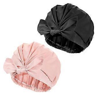 Large Waterproof Double Layer Shower Cap Satin Lined Reusable Bowknot Design Pack of 2