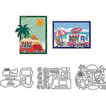 Summer Sea Beach Die Cuts for Card Making Trolley Metal Cutting Dies Coconut Trees Surfboard Ice Cream Carbon Steel Embossing Stencils Template for Sc
