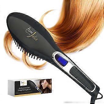 Hair Straightening Brush with Ceramic Ionic Technology, Fast Heating, LCD Display, Black 40W