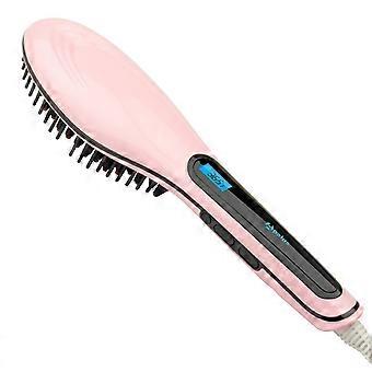 Hair Straightener Brush Light Pink LCD Display 2in1 Fast Heating Hot Comb for Smooth Finish