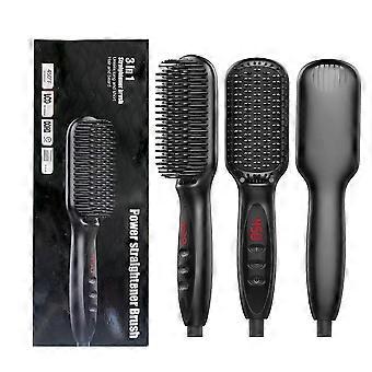 Hair Straightener Brush and Beard Straightening Comb 3 in 1 Ceramic Ionic Fast Heating Black