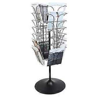 Floor Standing Magazine Display Stand with 4 Tier Rolling Shelves for Exhibitions Black Steel