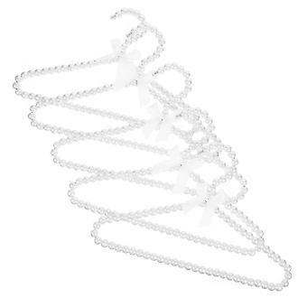 5pcs No Mark Pearl Clothes Hangers with Bowknot Slip Resistant Space Saving Drying for Balcony