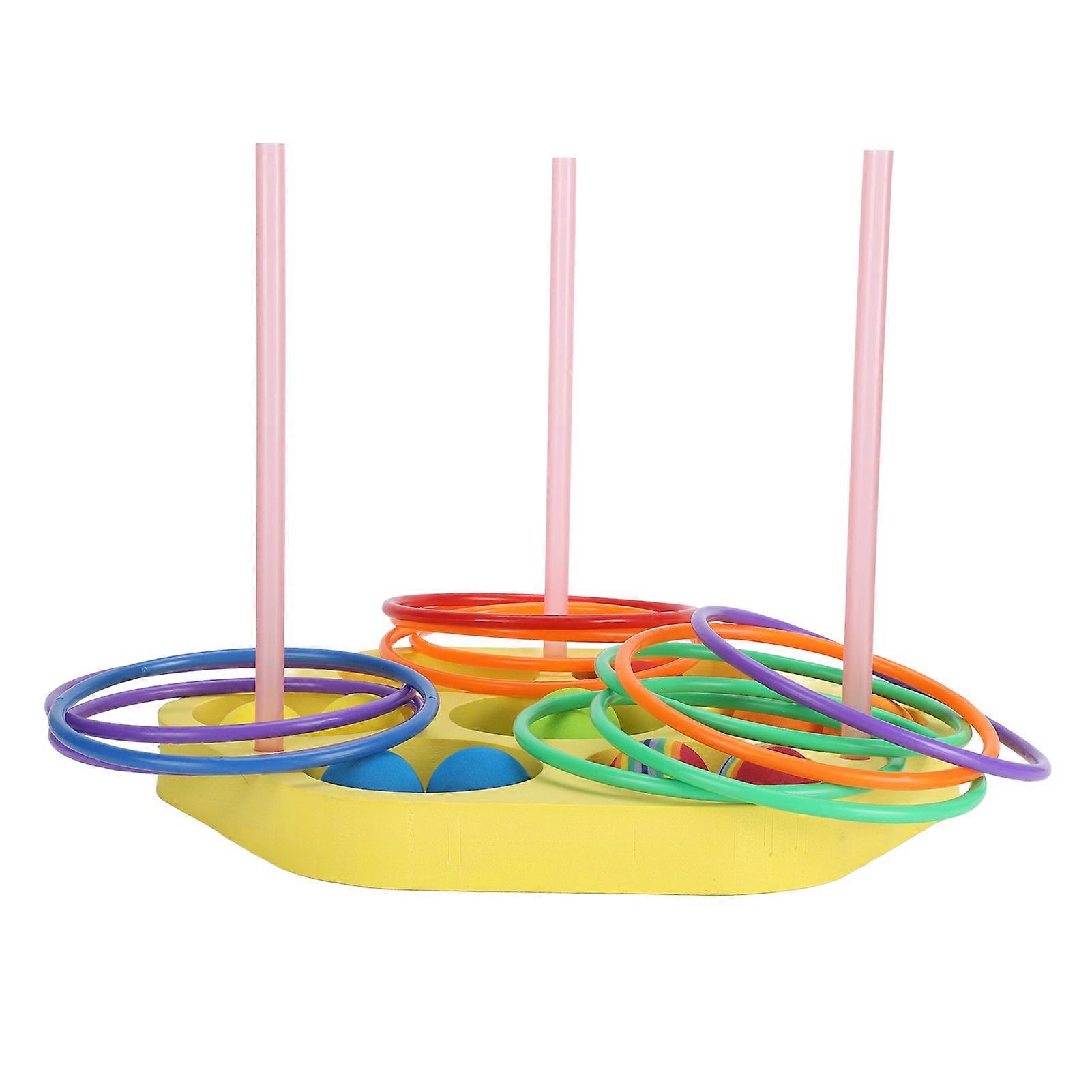 Swimming Pool Toss Game EVA Hexagonal Round with 12pcs Balls 12pcs Rings Floating Pool Games Throwing Toys for Party Beach