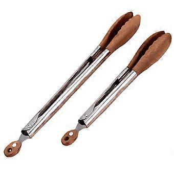 2Pcs Stainless Steel Kitchen and Grilling Tongs with HeatResistant Wooden Handles, AntiSlip Grip