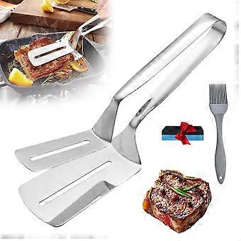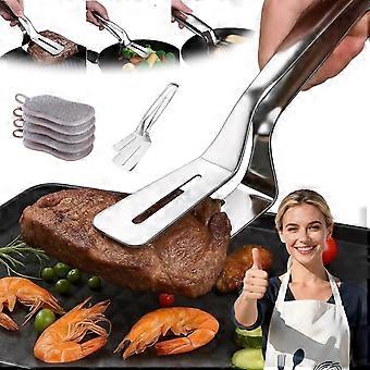 BBQ Grill Tongs Stainless Steel 2 in 1 Spatula Clamp with NonSlip Heatproof Handle for Outdoor Cooking