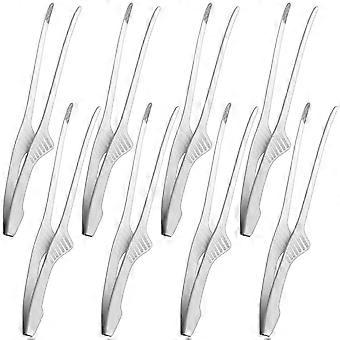 Stainless Steel BBQ Tongs with Stand, Non Slip Long Handle for Korean BBQ, Buffet, Camping, 8pcs Silver
