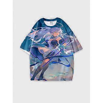 T-Shirt Round Neck, Loose Short Sleeve Pattern Graphic Tee, Unisex Summer Casual Top U2498