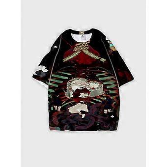 T-Shirt Round Neck, Loose Short Sleeve Pattern Graphic Tee, Unisex Summer Casual Top U2545