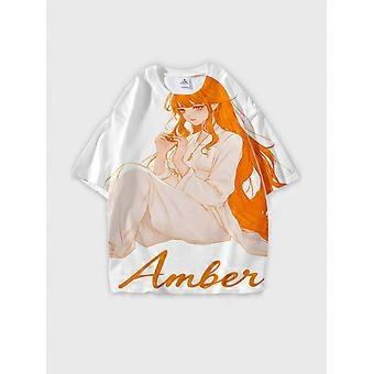 T-Shirt Round Neck, Loose Short Sleeve Pattern Graphic Tee, Unisex Summer Casual Top V2227